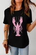 Checkered Lobster Graphic Round Neck Short Sleeve T-Shirt