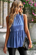 Devine Dotted Frill Trim Sleeveless Tiered Top