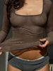 Devine Square Neck Long Sleeve Eyelet T-Shirt