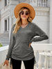 Drawstring V-Neck Long Sleeve T-Shirt