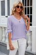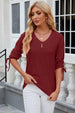 Eyelet Drawstring V-Neck Half Sleeve T-Shirt