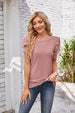 Eyelet Round Neck Petal Sleeve T-Shirt