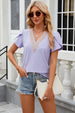 Eyelet V-Neck Petal Sleeve T-Shirt