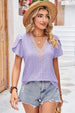 Eyelet V-Neck Petal Sleeve T-Shirt