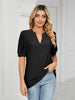 Florira Eyelet Notched Short Sleeve T-Shirt