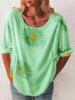 Full Size Flower Round Neck Half Sleeve T-Shirt Plus Size