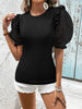 Ivy Lane Polka Dot Flounce Sleeve Round Neck Top
