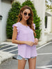 Plaid Ruffled Round Neck Cap Sleeve T-Shirt