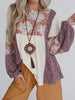Printed Color Block Balloon Sleeve T-Shirt