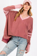 The Mineral Wash Side Slit Contrast T-Shirt is a unique and stylish top that combines various design elements. The mineral washed fabric gives it a trendy and textured look. The V-neck with contrast banding adds a touch of detail to the neckline. Stitchy sewing throughout the t-shirt adds a subtle and cool edge. Featuring long sleeves with band accents and keyhole details, this top offers a chic and fashionable appearance. The stripes on the sleeves provide a bold and eye-catching contrast. With side slits for added movement, this t-shirt offers both style and comfort. The oversized and loose fit enhances the casual and relaxed vibe of the top, making it a versatile and on-trend choice for everyday wear.