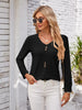 Decorative Button Openwork V-Neck T-Shirt