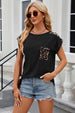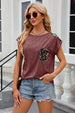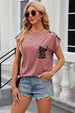 Leopard Round Neck Cap Sleeve T-Shirt
