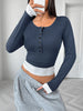 Long Sleeve Button Front Fitted T-Shirt