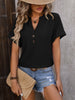 Mandy Eyelet Notched Short Sleeve T-Shirt