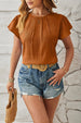 Round Neck Keyhole Cap Sleeve T-Shirt