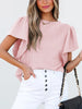 Round Neck Ruffle Sleeve Top