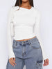 Ruched Asymmetrical Neck Long Sleeve T-Shirt
