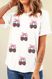 Sequin Cherry Round Neck Short Sleeve T-Shirt