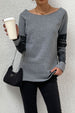 Shiny Boat Neck Long Printed Sleeve Blouse