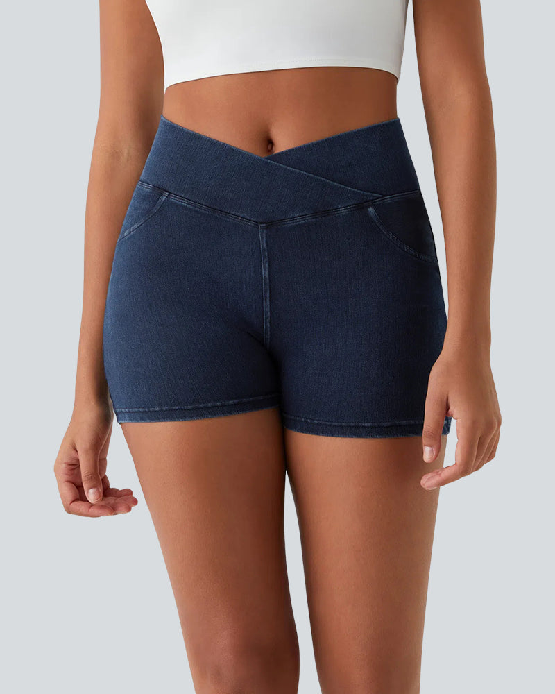Get the look of denim with the comfort of leggings in these stylish, lightweight shorts—perfect for effortless wear on the go.